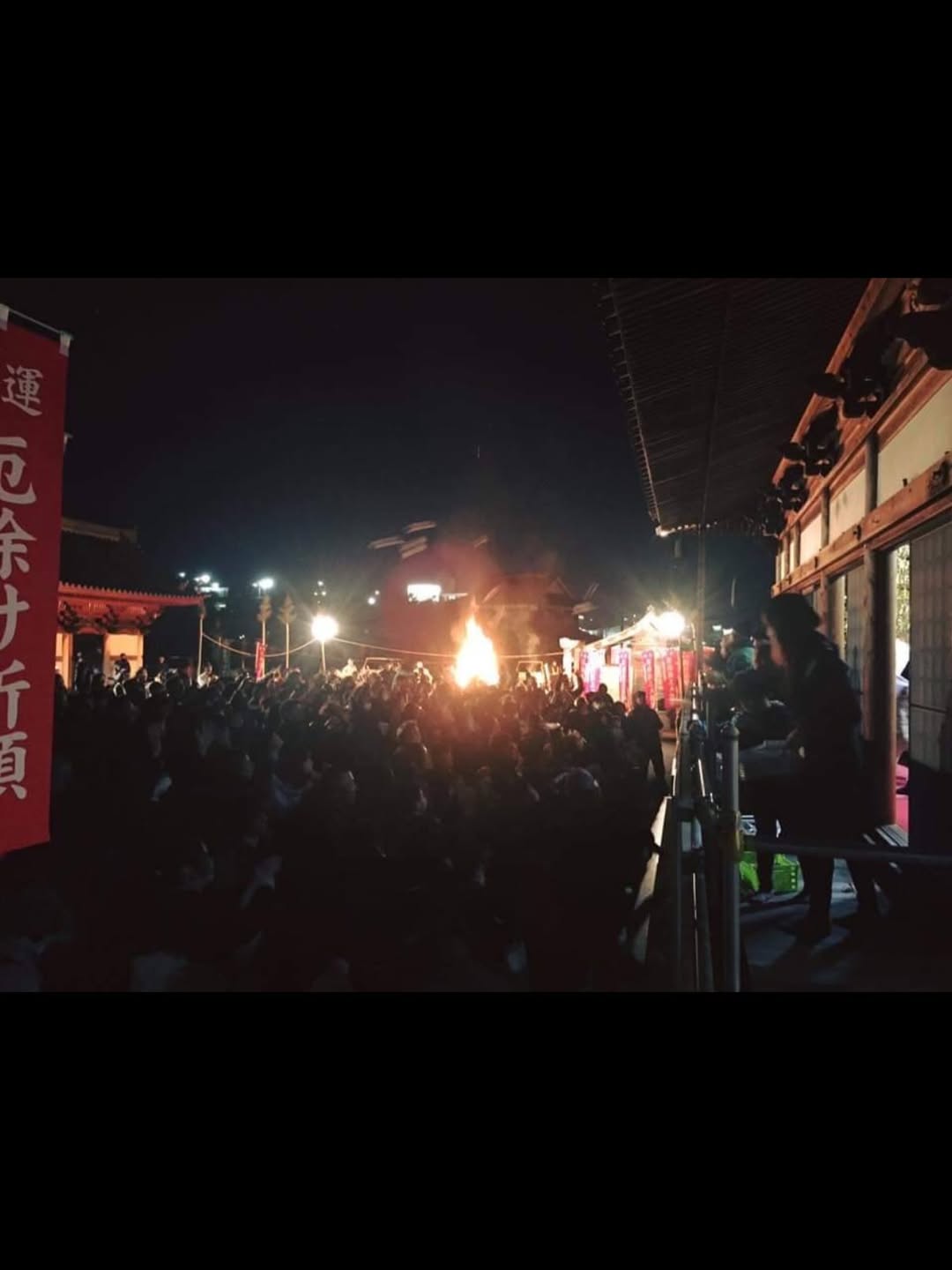 観現寺から望む美しい夜景をバックに、夜の静寂の中で赤々と燃え盛る炎は、見る者の心を浄化するような幻想的な美しさがあります。この炎と共に、皆様の厄を焼き尽くし、清々しい気持ちで春を迎えられるよう祈願いたします。